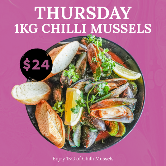 Thursday Special - $2 Oysters & $24 1KG Chilli Mussels!